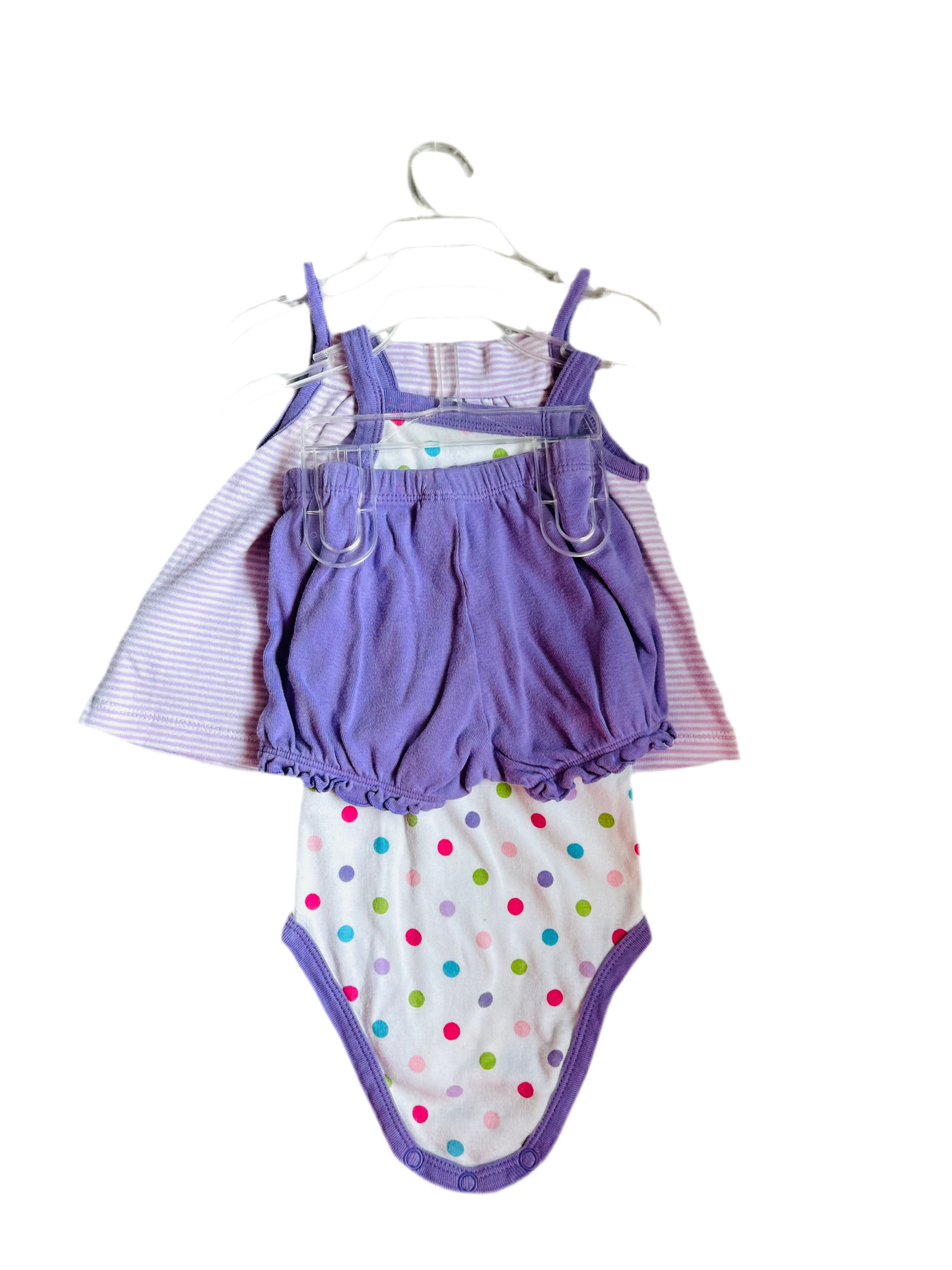 Girls 3 piece set, top, shorts and onesie